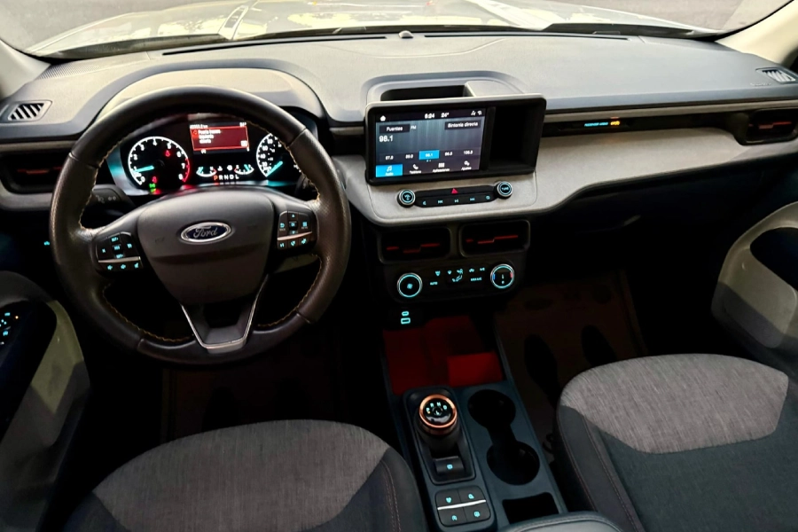 En el interior, la Maverick XLT ofrece una cabina cómoda, funcional y bien equipada, diseñada para brindar una experiencia de manejo práctica y agradable. Sus espacios están pensados para el confort del conductor y los pasajeros, con tecnología intuitiva que facilita cada trayecto y eleva la experiencia a bordo.